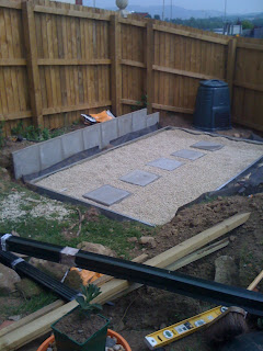Down the bottom of our garden, we had an area about 15' x 20' (in an arc-shape, not square unfortunately) covered with stone chippings. I set to work creating some beds: