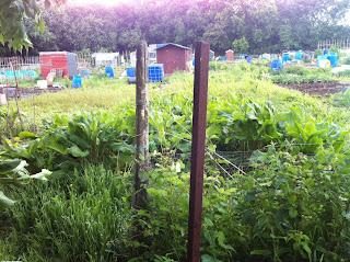 Have managed to clear a bit of the new 1/2 plot I've taken on - that's a lot closer to us than the other allotment. Took it on last Sunday (22/05/11):